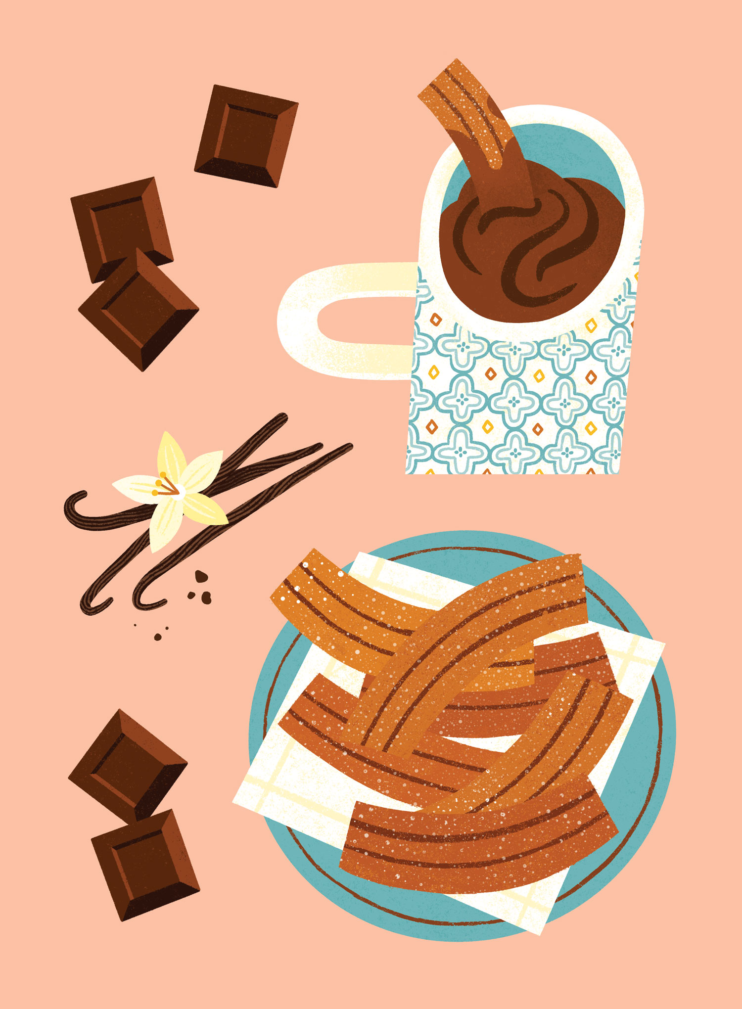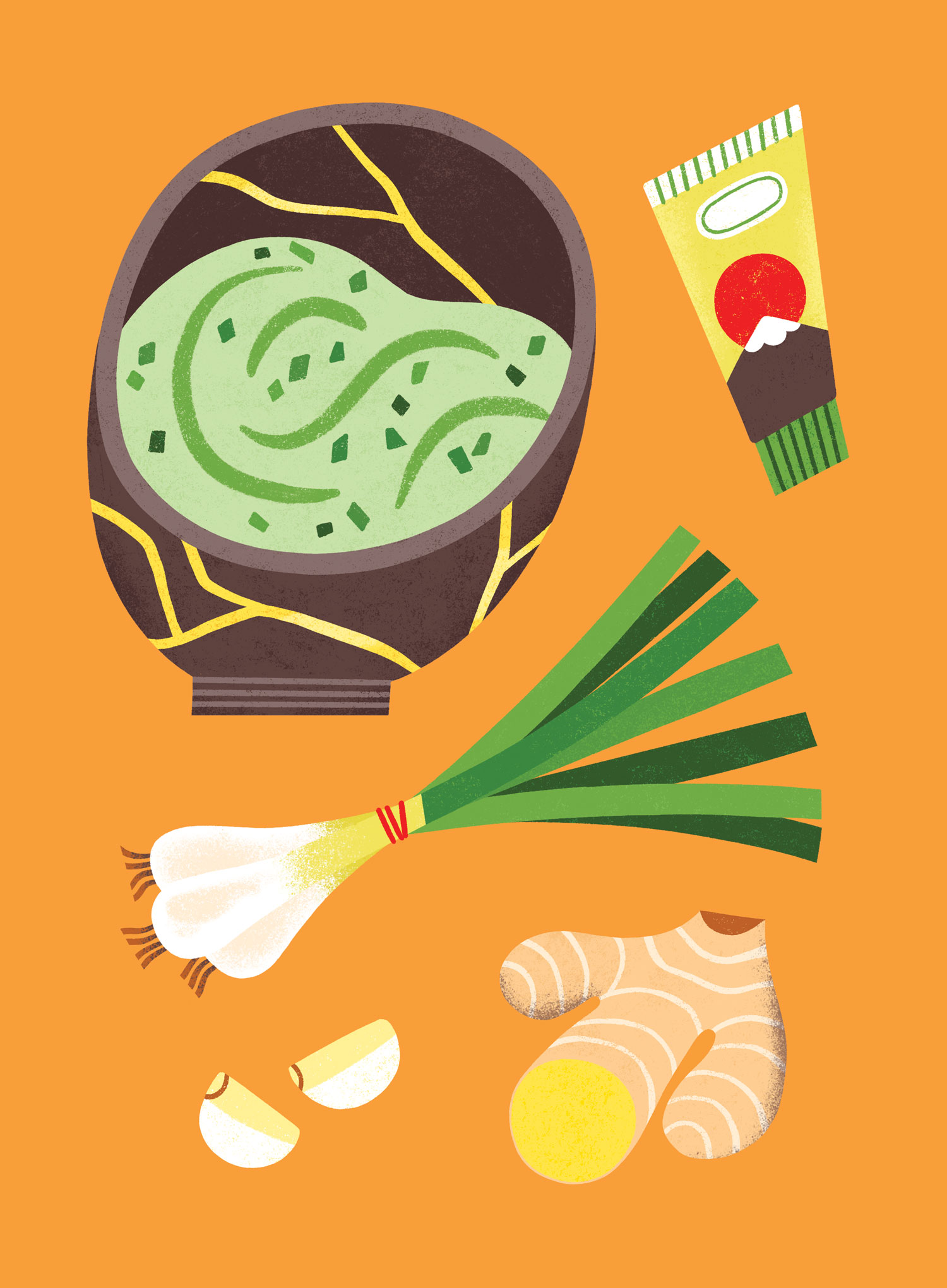 Illustrated dip receipes and food ingredients for Dip! cookbook.